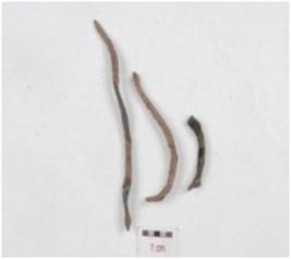 | Description / विवरण | Copper nails, rectangular in cross section and slightly curved. |