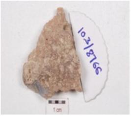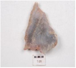 | Description / विवरण | An stone triangular flake with cortex on the surface. |
