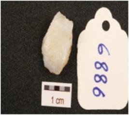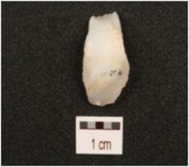 | Description / विवरण | An end scraper made on an end struck chalcedony flake, prominent bulb at ventral side, depression on the dorsal side. |