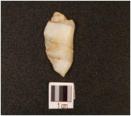 | Description / विवरण | A modified flake, made on quartz, ridge on dorsal, irregular edges, distral end, defused bulb on proximal end. |