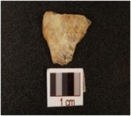 | Description / विवरण | A modified flake, made on quartz, irregular edges, prepared platform, distral end is visible, defused bulb on proximal end. |