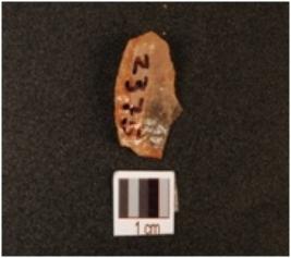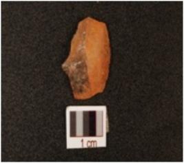 | Description / विवरण | A modified flake, made on quartz, prepared platform, irregular edges, ridge on dorsal, distral end is broken, defused bulb on proximal end. |