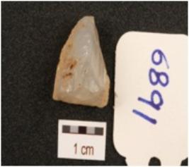 | Description / विवरण | A pointed chalcedony core, prepared platform, parallel fluted flakes, partly weathered on one side. |
