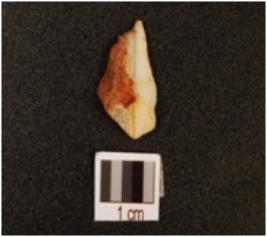 | Description / विवरण | A modified flake, made on quartz, prepared platform, irregular edges, distral end is visible, defused bulb on proximal end, dorsal is uneven. |