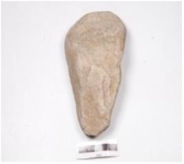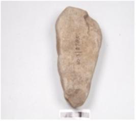 | Description / विवरण | Handaxe made on quartzite pebble, triangular cross section, pointed end and slightly broken. |