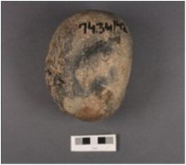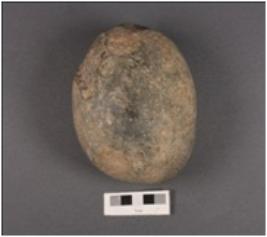 | Description / विवरण | A hammer stone, made on granite, smooth and polished surface with pitting marks and round in shape. |