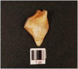 | Description / विवरण | A modified flake, made on chalcedony, irregular edges, distral end is visible, defused bulb on proximal end, dorsal side is uneven. |