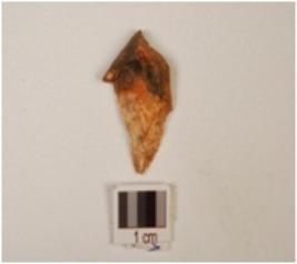 | Description / विवरण | A modified flake, made on chert, prepared platform, irregular edges, ridge on dorsal, distral end is visible, flat ventral, defused bulb on proximal end. |