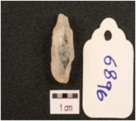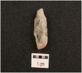 | Description / विवरण | A pointed core of quartz, visible cortex, parallel flake scars on surface on surface. |