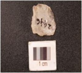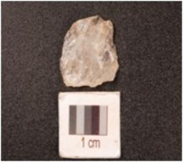 | Description / विवरण | Fragment of a parrel sided blade on quartz crystal, prepared platform on proximal end, diffused bulb on ventral side, broken along distal ned, use-wear marks along cutting edges. |