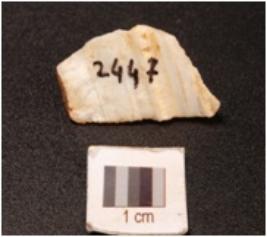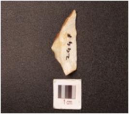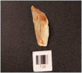 | Description / विवरण | A blunted blade on chert, prepared platform on proximal end, prominent bulb on ventral side, cortex on both proximal and distal end, use wear marks along the cutting edge. |