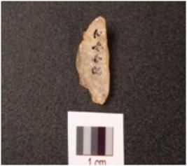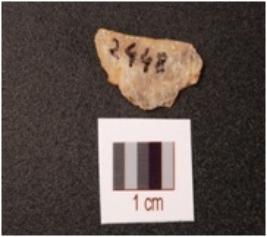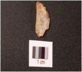 | Description / विवरण | A blunted blade on quartz rock crystal flake, convex cutting edge, diffused bulb on ventral side, use-wear marks along the cutting edge. |