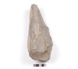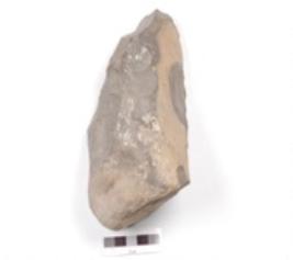 | Description / विवरण | Handaxe made on basalt, cortex partly intact and flake scars on with surface. |