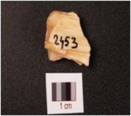 | Description / विवरण | A chert flake with flake scars on dorsal side. |