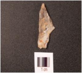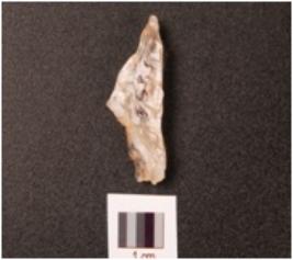 | Description / विवरण | A borer quartz crystal on blade with partly broken, pointed top, use-wear marks along one lateral side. |