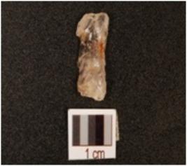 | Description / विवरण | A quartz blade with single ridge on dorsal, triangular in section and use wear marks on cutting edge. |