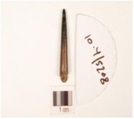 | Description / विवरण | Fragment of a point made on bone, heat treatment, pointed and circular cross section. |