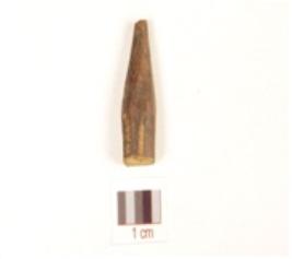 | Description / विवरण | Bone point with two ends, both tips broken, circular cross section, smooth surface and surface black due to heat treatment. |