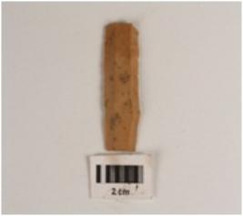 | Description / विवरण | Chert blade with a double-ridge on dorsal side, use-wear marks along the cutting edges, trapezoidal in section. |