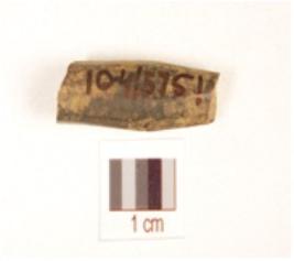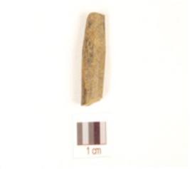 | Description / विवरण | Fragment of a point with oval cross section, smooth surface, pointed tip with other end broken and surface black due to heat treatment. |