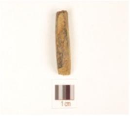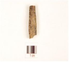 | Description / विवरण | Fragment of bone point with oval cross section, both ends broken, smooth surface and surface black due to heat treatment. |