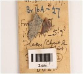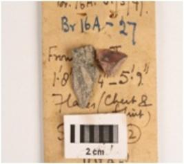 | Description / विवरण | Two fragment of blades one on basalt other on chert.1 Rectangular in section, sharp cutting edges, diffused bulb on ventral surface.2 A ridge on surface, pointed distal end, a ridge on dorsal surface. |