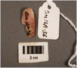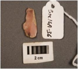 | Description / विवरण | A chert blade, mid-ridge on dorsal side, use- wear marks along the cutting edges. |