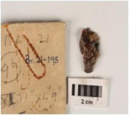 | Description / विवरण | A chalcedony blade with use wear marks on cutting edges, a ridge on doesal surface, diffused bulb on proximal end, triangular in section, cortex visible. |