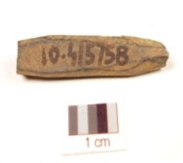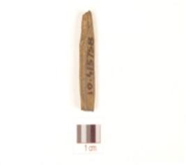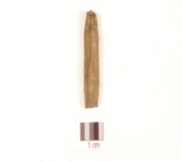 | Description / विवरण | Fragment of a bone point with circular cross section, broken tip, other end also broken, smooth surface and surface black due to heat treatment. |