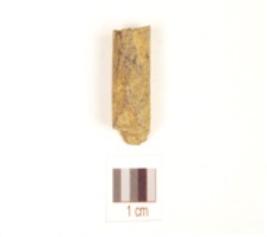 | Description / विवरण | Fragment of bone point circular cross section, both ends smooth surface and surface black due to heat treatment. |