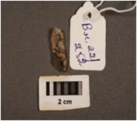 | Description / विवरण | A chalcedony blade, triangular in section, mid-ridge on dorsal side, prepared platform and use-wear marks along the cutting edges. |