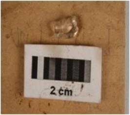 | Description / विवरण | Fragment of crystal stone blade, small in size, sharp cutting edges, a ridge on dorsal surface, triangular in section, prominent bulb on proximal end, distal end broken. |