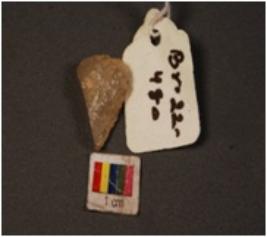 | Description / विवरण | Microlith modified quartz crystal stone object. Cortex and flake scars surface. |