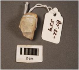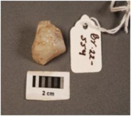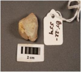 | Description / विवरण | Microlith modified quartz stone object. Cortex and flake scars surface. |