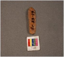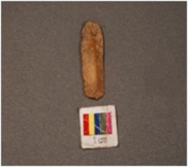 | Description / विवरण | Parallel sided microlith blade with use wear marks on cutting edges and prominent mid ridge on dorsal. Triangular in section. |