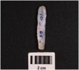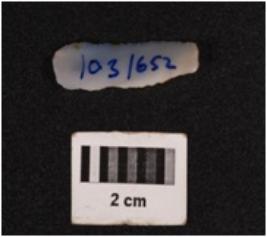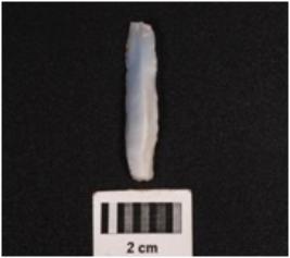 | Description / विवरण | Parallel sided stone blade, mid ridge on dorsal surface, ventral surface is smooth and prominent bulb at proximal end, use wear marks on edge. |