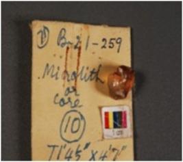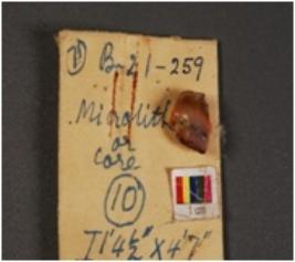 | Description / विवरण | Chert blade core with four prominent blade scar a striking platform visible on proximal end. |