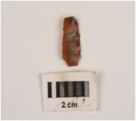 | Description / विवरण | A parallel chert blade with midridge on dorsal side and deffused bulb on ventral side along with proximal end. Use wear marks on the both edges. |