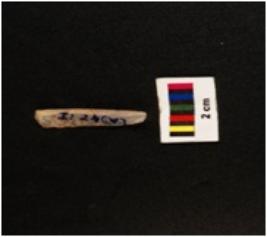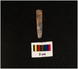 | Description / विवरण | Blade with middle ridge on dorsal side working edge with use wear marks on one side, ventral side of proximal end with diffused bulb, distal end broken. |