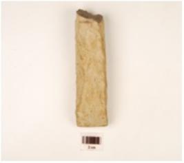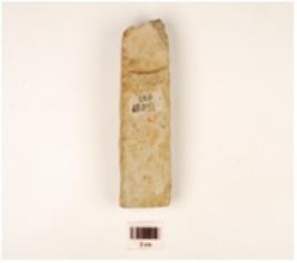 | Description / विवरण | Celt with sharp cutting edge on one end, other end broken, chippings on surface visible, rectangular cross section and slightly polished on surface. |