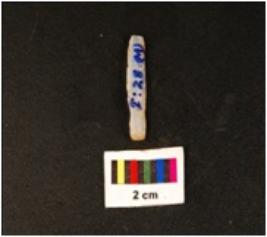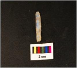 | Description / विवरण | Parallel sided microlith blade with double ridge on dorsal. Trapezoid in section and use wear marks on cutting edges. |