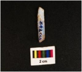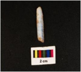 | Description / विवरण | Blade with two blade scars with working edges with use wear marks proximal end with a striking platform and a positive bulb on the ventral side, distal end broken. |