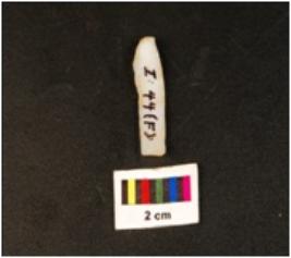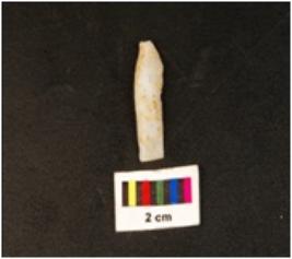 | Description / विवरण | Parallel sided chalcedony blade, double ridge on dorsal, use wear edges, diffused bulb, proximal end. |