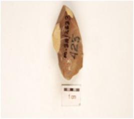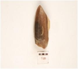 | Description / विवरण | Fragment of fluted core with six blade scars and ripple marks on surface. |
