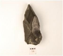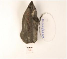 | Description / विवरण | A chert scraper with flake scars on surface, trapezoidal cross section and irregular retouch on working edge. |