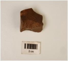 | Description / विवरण | Fragment of chert core with a prepared platform, flake scars on the surface and cortex intact. |