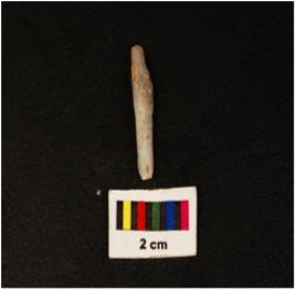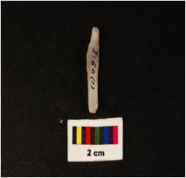 | Description / विवरण | A microlithic point with a mid ridge on dorsal side, bulb on ventral side, broken at distal end and triangular in section. |