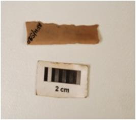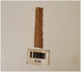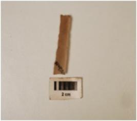 | Description / विवरण | A chert blade with mid-ridge on dorsal side, triangular in section, both ends broken and use-wear marks along the cutting edges. |