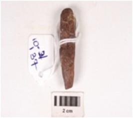 | Description / विवरण | Fragment of an iron point rectangular in section, broken top, semi-circular base and corroded surface. |