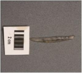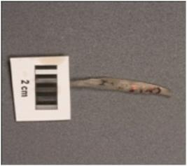 | Description / विवरण | Parallel sided microlith blade with mid-ridge on dorsal side, use-wear marks on cutting edges, both ends are sharp. |